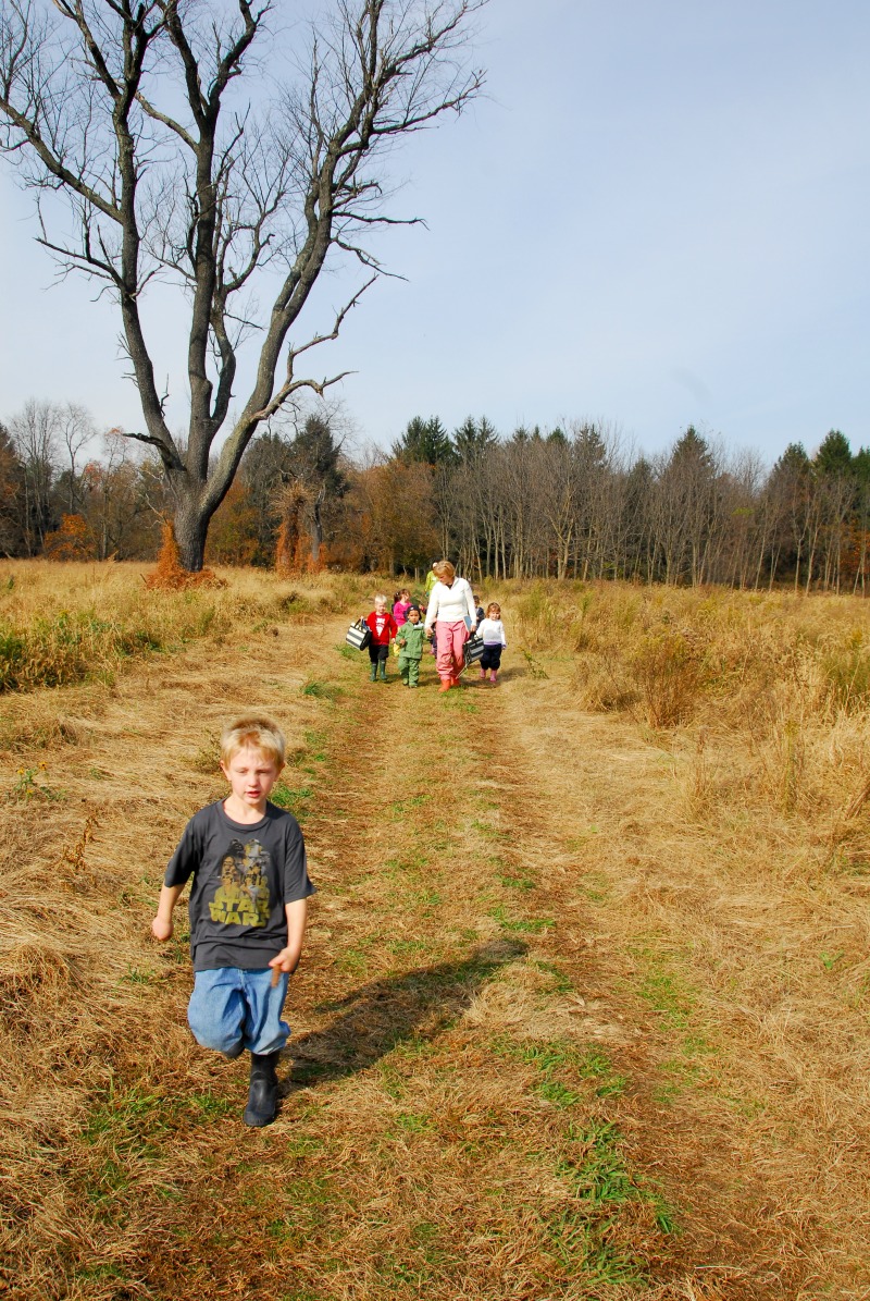 We get to see the changing climate and if it is warm enough, wade in the creek. Snack and a run through the fields make the trip complete.