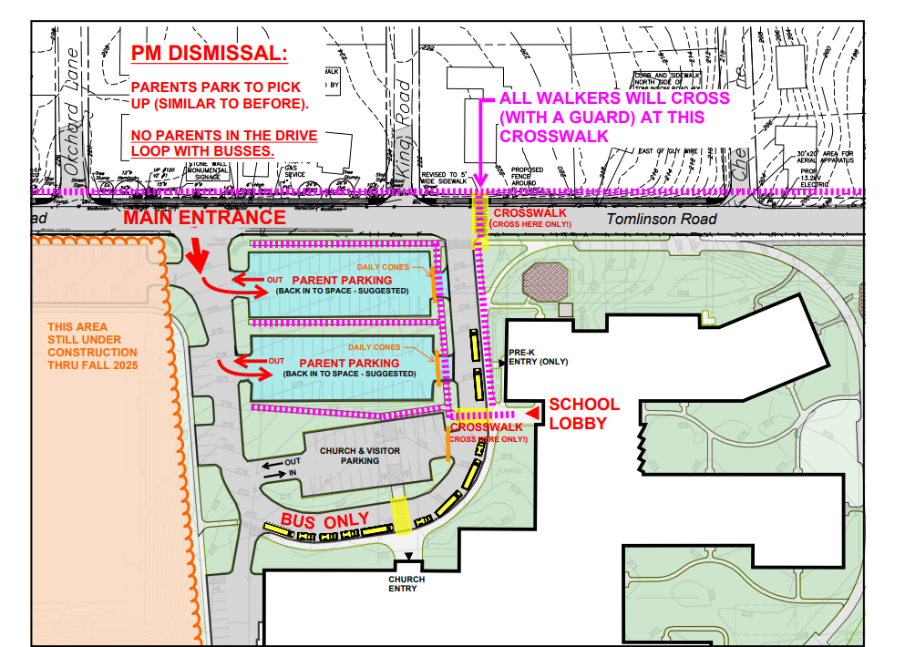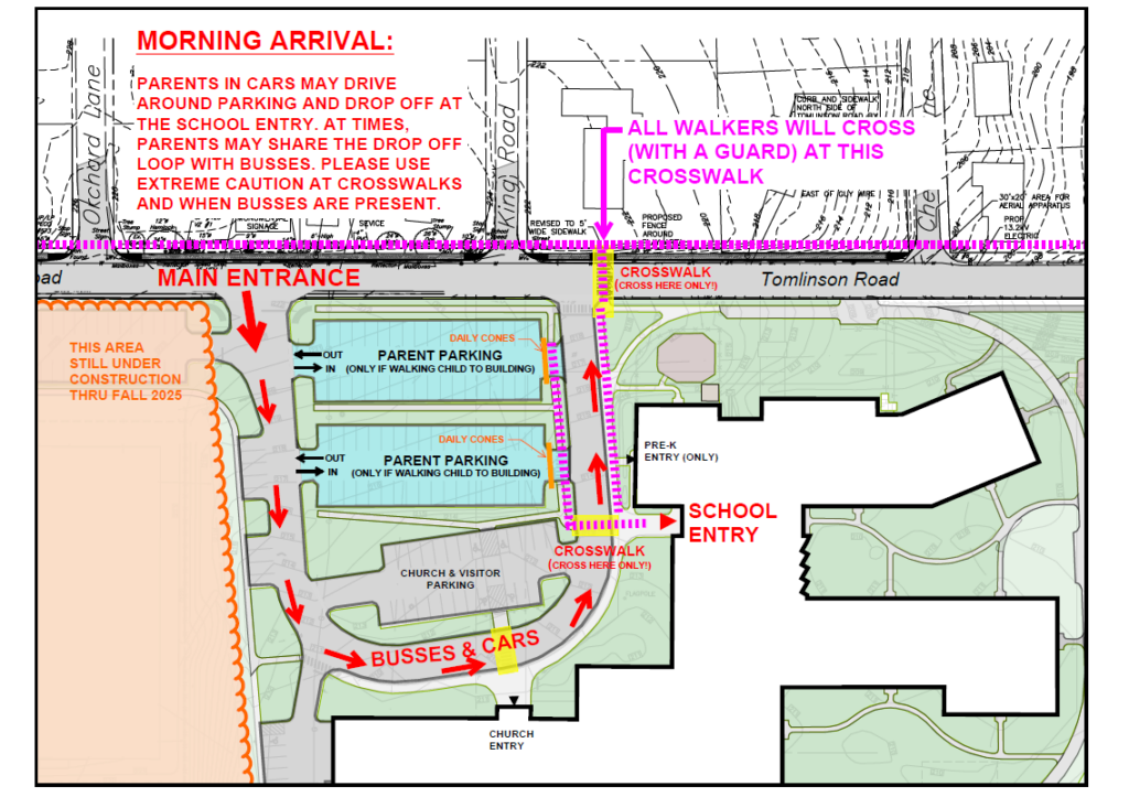 At times, parents and buses may share the same loop—please use caution at all crosswalks and when buses are present.